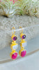 Materials: 21kt gold plated bronze. Lightweight. Drops to approx 2" Faceted semiprecious stones.